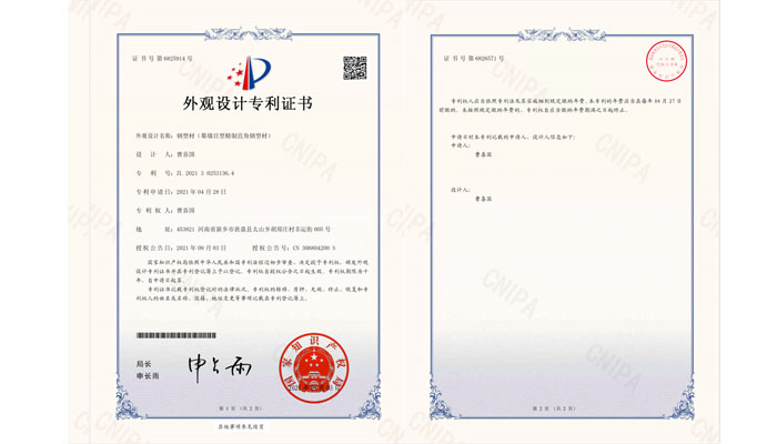 西創(chuàng)系統(tǒng)一種直角鋼型材外觀專利證書